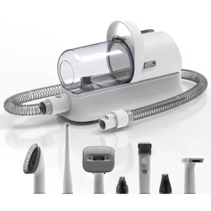 Transform your at-home grooming experience with the Professional 7-in-1 Pet Grooming Kit, featuring a built-in low-noise vacuum system that collects pet hair as you trim. Designed for both dogs and cats, this all-in-one grooming solution includes everything you need for a clean, stress-free grooming session—without the mess.